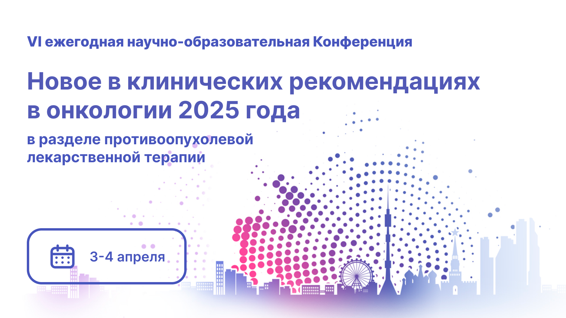 3-4 апреля 2026 года, в формате онлайн-трансляции прошла VI ежегодная научно-образовательная Конференция “Новое в клинических рекомендациях в онкологии 2025 года в разделе противоопухолевой лекарственной терапии”. Статус клинических рекомендаций ежегод...