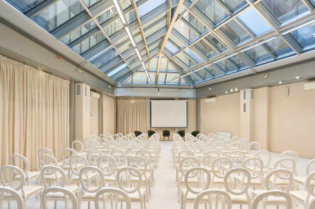 Высокие потолки и стеклянная крыша обеспечивают естественный свет